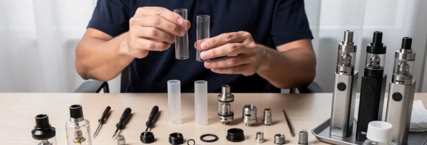 Le plastique PCTG (PolyéthylèneTéréphtalateGlycolé) constitue une alternative plus économique et résistante aux chocs. Contrairement au polycarbonate standard, le PCTG bénéficie d’une meilleure résistance chimique face à certains e-liquides agressifs. Sa légèreté et sa flexibilité le rendent particulièrement adapté aux vapoteurs nomades qui transportent régulièrement leur matériel. Toutefois, sa durabilité reste inférieure au verre, avec une tendance à l’opacification progressive après plusieurs mois d’utilisation intensive. Les fabricants comme Aspire et Vaporesso proposent désormais des hybrides combinant un tube extérieur en PCTG renforcé et un insert interne en verre pour optimiser protection et performance.