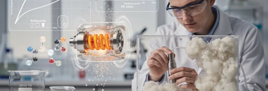 Dans les atomiseurs sub-ohm modernes, la formation de la vapeur repose sur un phénomène de nucléation hétérogène. Les surfaces métalliques de la résistance, les fibres du coton et même les micro-aspérités internes de la chambre de vaporisation servent de sites de nucléation, c’est-à-dire de points de départ à partir desquels se forment les bulles de vapeur. La viscosité élevée de la glycérine végétale modifie nettement cette phase initiale.